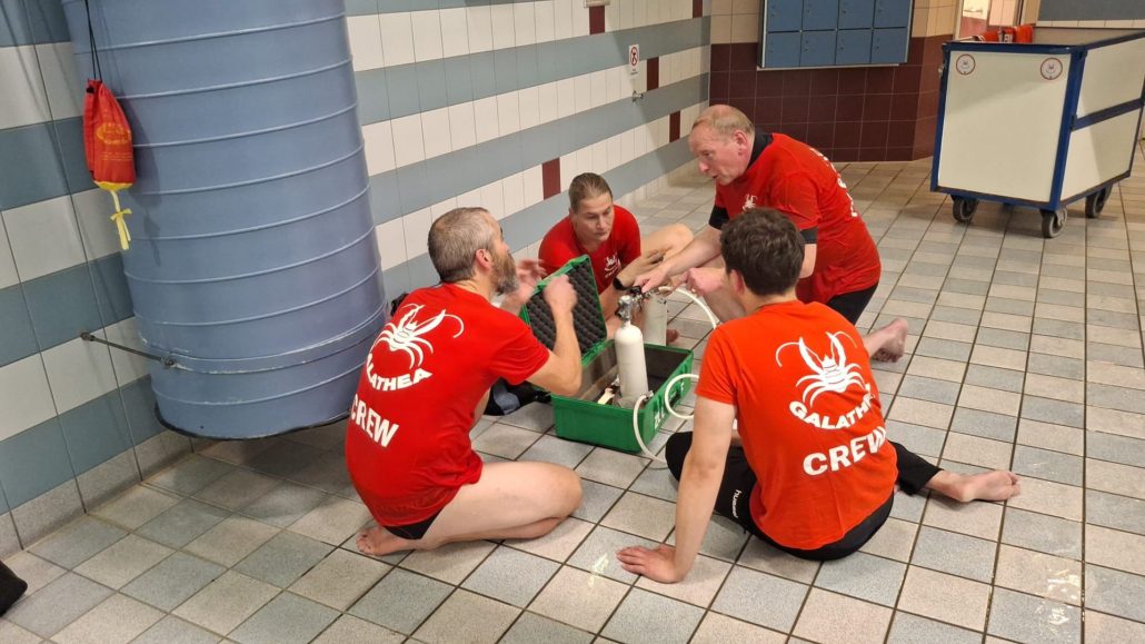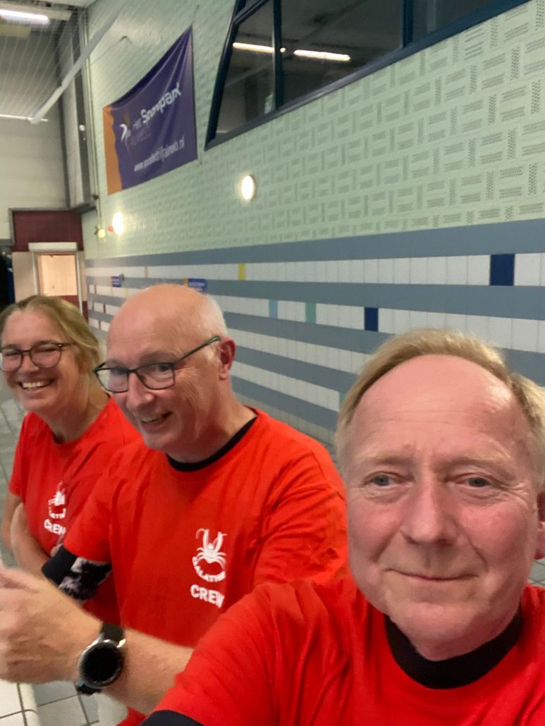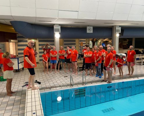 De test werd afgenomen door Karel en Danielle, die bevoegd zijn om deze NOB-zwemtest te verzorgen (zie foto hierboven 😊). Zij hebben zo’n twintig leden van Galathea flink getest.